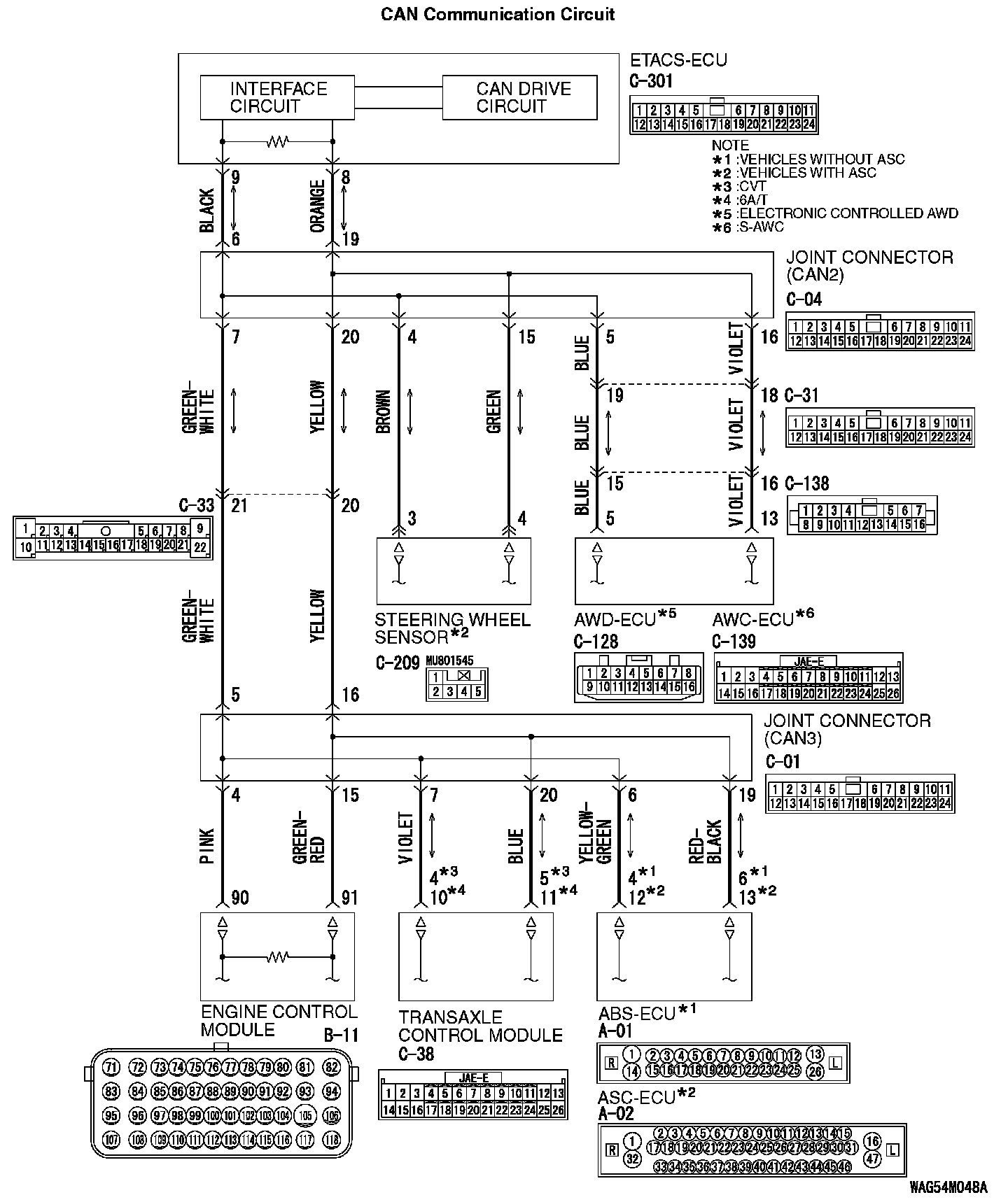YES : Check intermediate connector C-31 and C-138, and repair if necessary. If the intermediate connector is in good condition, repair the wiring harness between AWC-ECU connector C-139 and joint connector (CAN2) C-04.