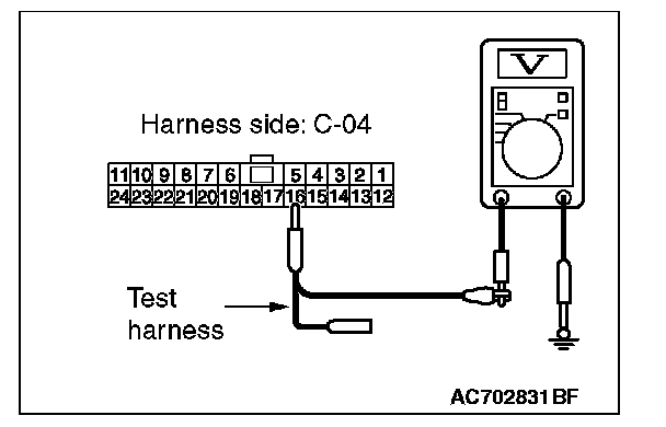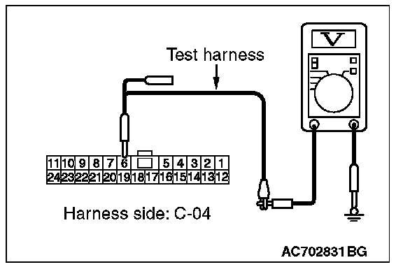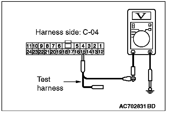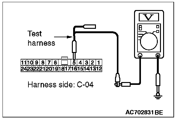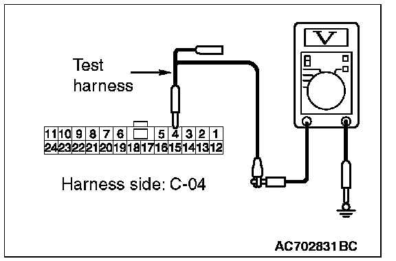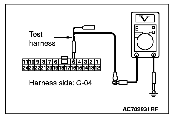 STEP 2. Check the wiring harness between joint connector (CAN2) C-04 and steering wheel sensor connector C-209 for a short to power supply. Measure the voltage at joint connector (CAN2) C-04.