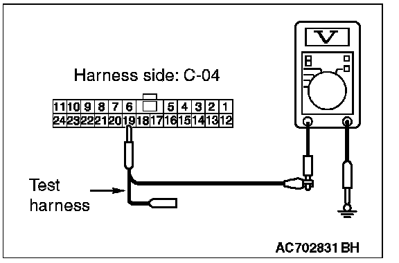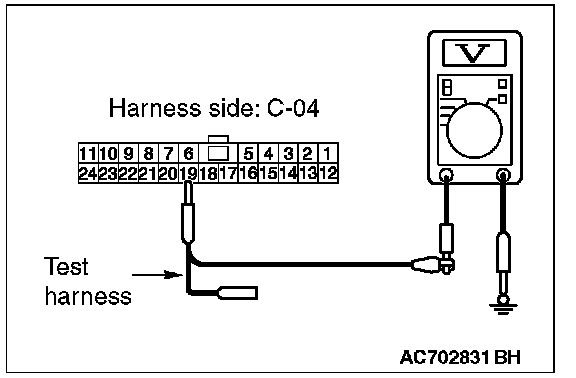 4. Measure the voltage between joint connector (CAN2) terminal 19 and body ground.