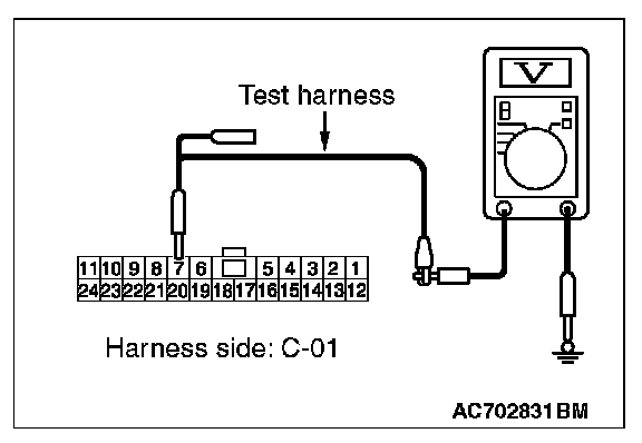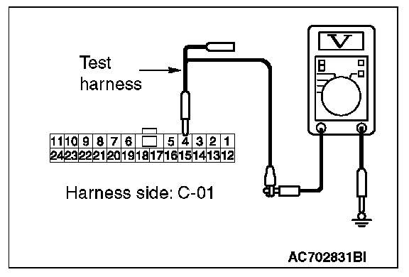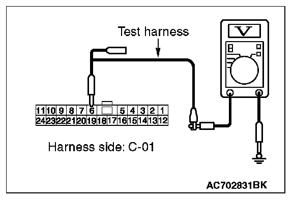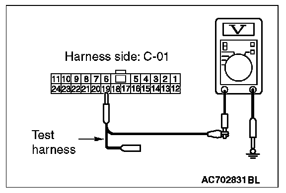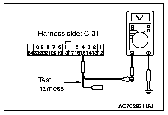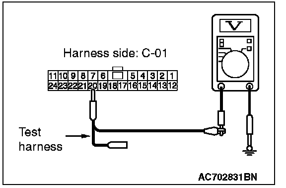 STEP 6. Check the wiring harness between joint connector (CAN3) C-01 and ABS-ECU connector A-01 [vehicles without ASC] or ASC-ECU connector A-02 [vehicles with ASC] for a short to power supply. Measure the voltage at joint connector (CAN3) C-01.