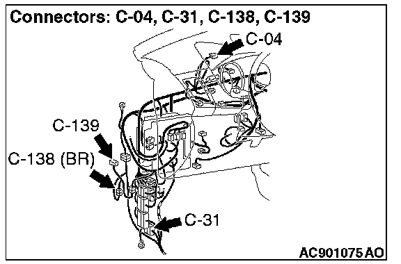 STEP 1. Check joint connector (CAN2) C-04, AWC-ECU connector C-139, intermediate connector C-138 and intermediate connector C-31 for loose, corroded or damaged terminals, or terminals pushed back in the connector.