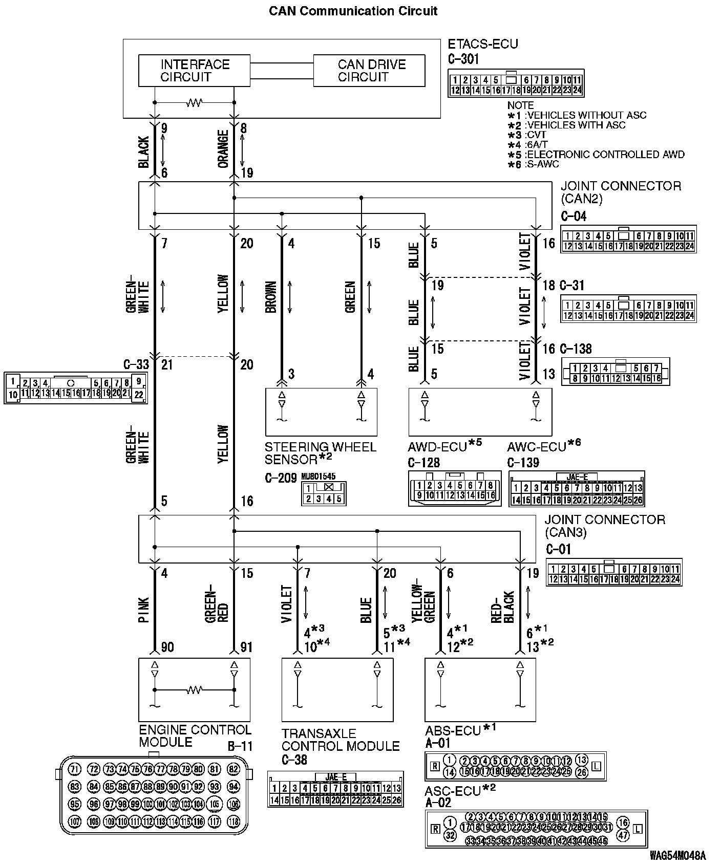 DIAGNOSTIC ITEM 8: Diagnose when the scan tool cannot receive the data sent by steering wheel sensor [Vehicles with ASC].CAUTION: When servicing a CAN bus line, ground yourself by touching a metal object such as an unpainted water pipe. If you fail to do so, a component connected to the CAN bus line may be damaged.