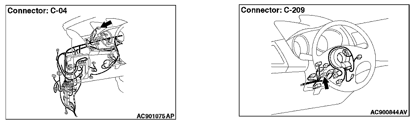 STEP 1. Check joint connector (CAN2) C-04 and steering wheel sensor connector C-209 for loose, corroded or damaged terminals, or terminals pushed back in the connector.