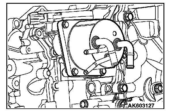 14. Remove the CVT fluid cooler from the transaxle case, and detach the O-ring from the cooler.