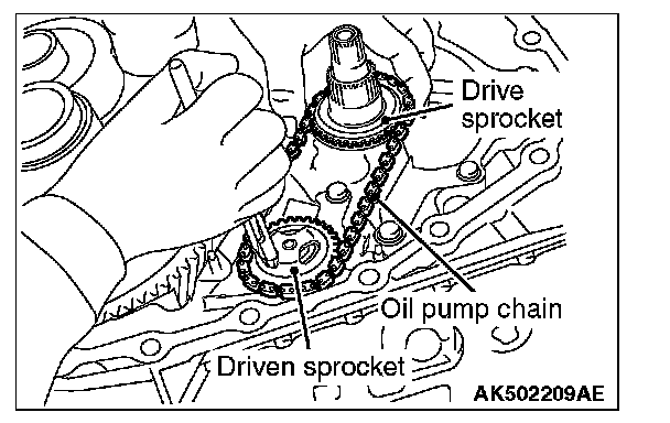 29. Expand the snap ring, and remove the driven sprocket, oil pump chain, and drive sprocket.
