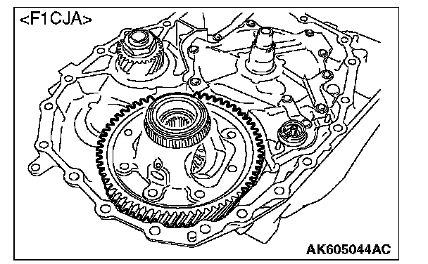 21. Using cylinder gage etc., measure the mounting bore diameter of differential side bearing outer race at the converter housing side; if the standard value is not satisfied, then replace the converter housing.