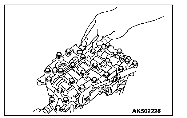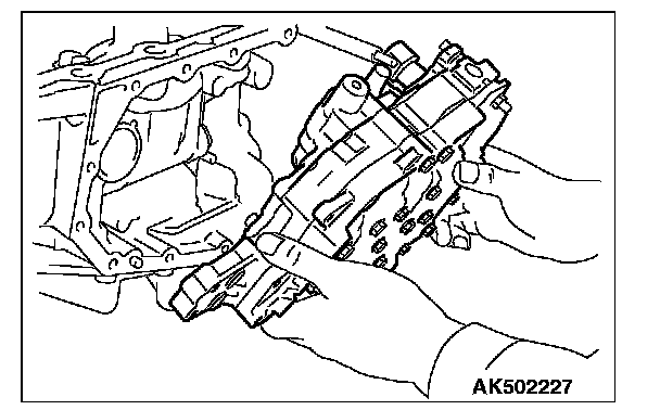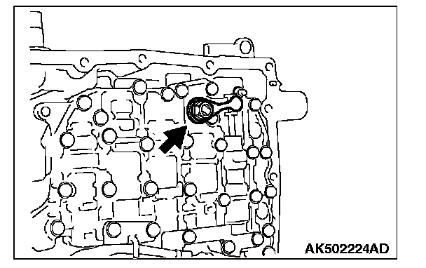 NOTE: Tilt the control valve assembly, and after removing from the manual shaft side, remove the terminal body from the transaxle case.