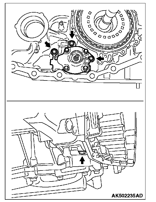 51. Remove the oil pump from the transaxle case. (One fastening bolt is installed at the backside from the transaxle case side.)