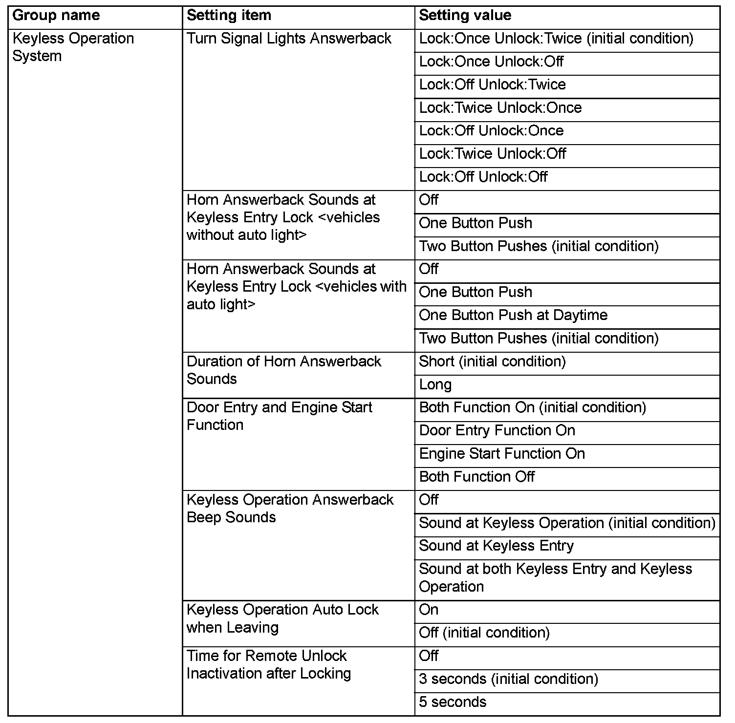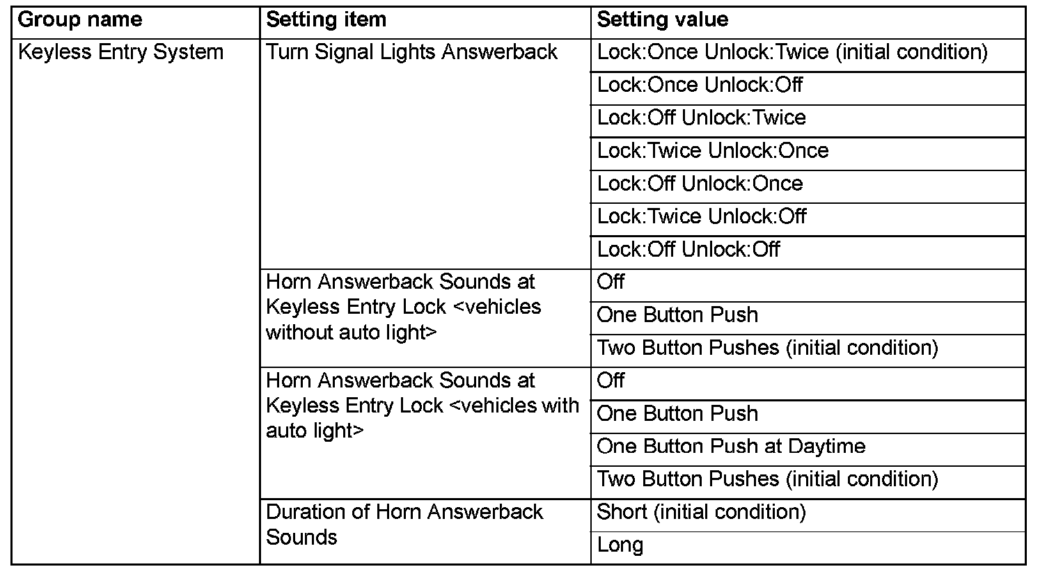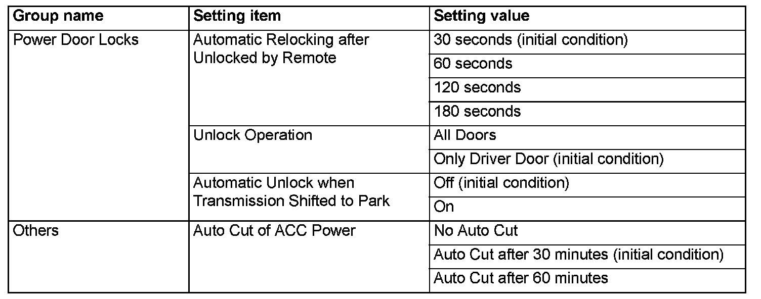 - Some items (e.g. "Coming home light", "Welcome light") cannot be set by the multivision display.