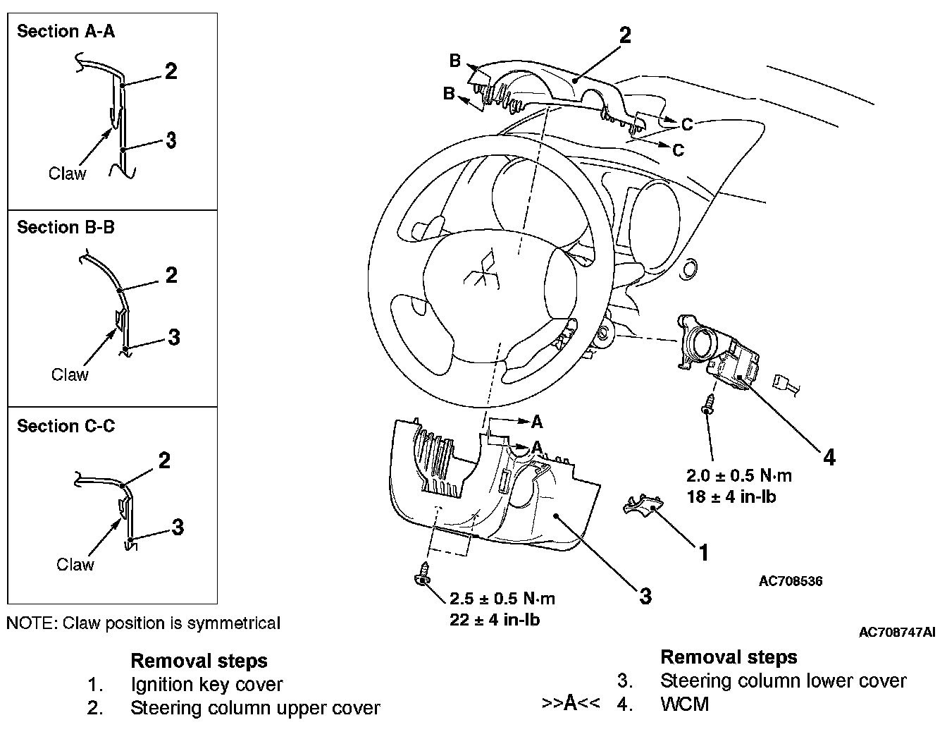 REMOVAL AND INSTALLATIONCAUTION: When WCM has been replaced, all key ID codes should be registered, referring to the ID code registration judgment table.