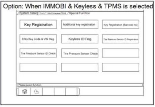 - "Keyless ID Reg.": When the ignition key is replaced or added as a single unit and the immobi and keyless key assembly.