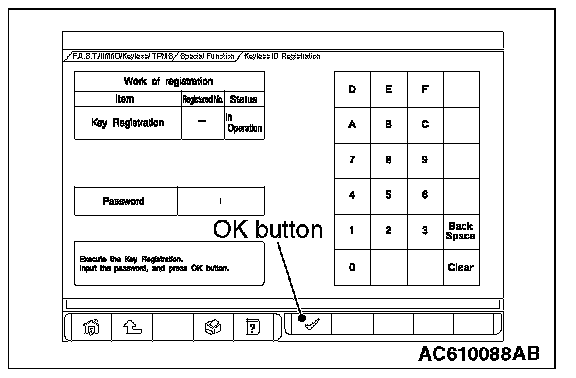 NOTE: When the key cannot be registered using scan tool MB991958, refer to Inspection Procedure 2 "The ignition key cannot be registered using scan tool. Inspection Procedure 2
