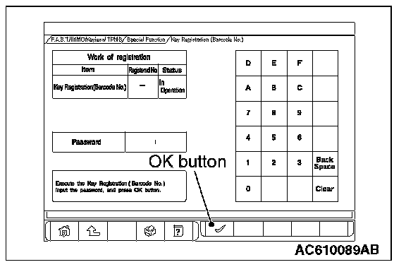 1. When "Key Registration (Barcode No.)" screen is displayed, enter the password for the key registration and press the OK button.