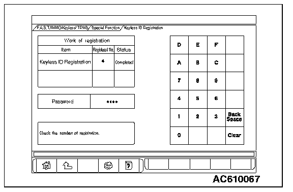 3. Push the OK button after "Keyless ID Registration was finished." is displayed.