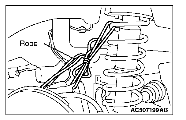 To avoid the break hose load, fix the trailing arm assembly with a rope as shown in the figure.