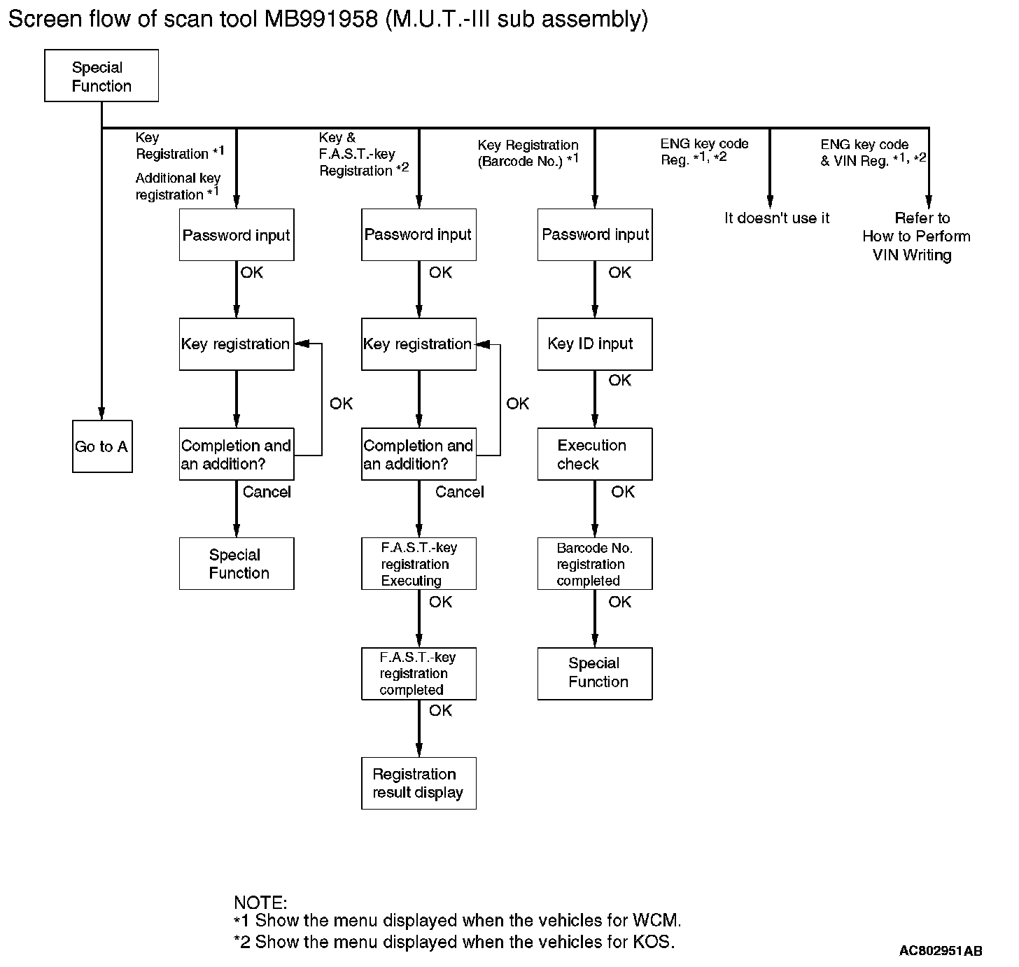 ID CODES REGISTRATION PROCEDUREREGISTRATION USING SCAN TOOL MB991958 (M.U.T.-III SUB ASSEMBLY)