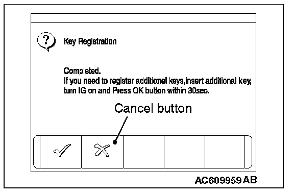 NOTE: When the key cannot be registered using scan tool MB991958, refer to Inspection Procedure 2 "The keyless operation key cannot be registered using scan tool.