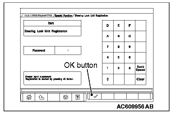 1. Enter the password on "Steering Lock Unit Registration" screen and press the OK button to register the KOS ID.