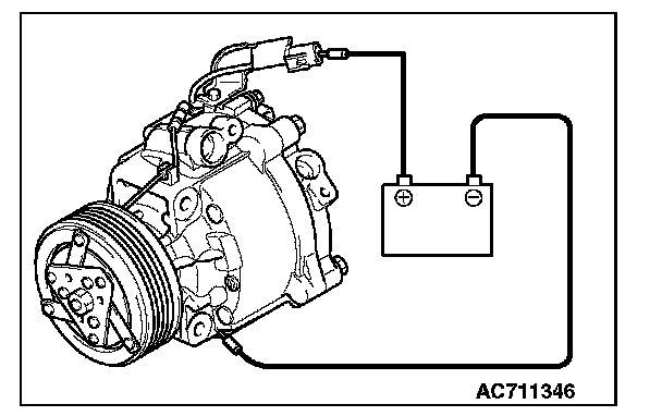 2. Connect positive battery voltage directly to the connector for the A/C compressor clutch.