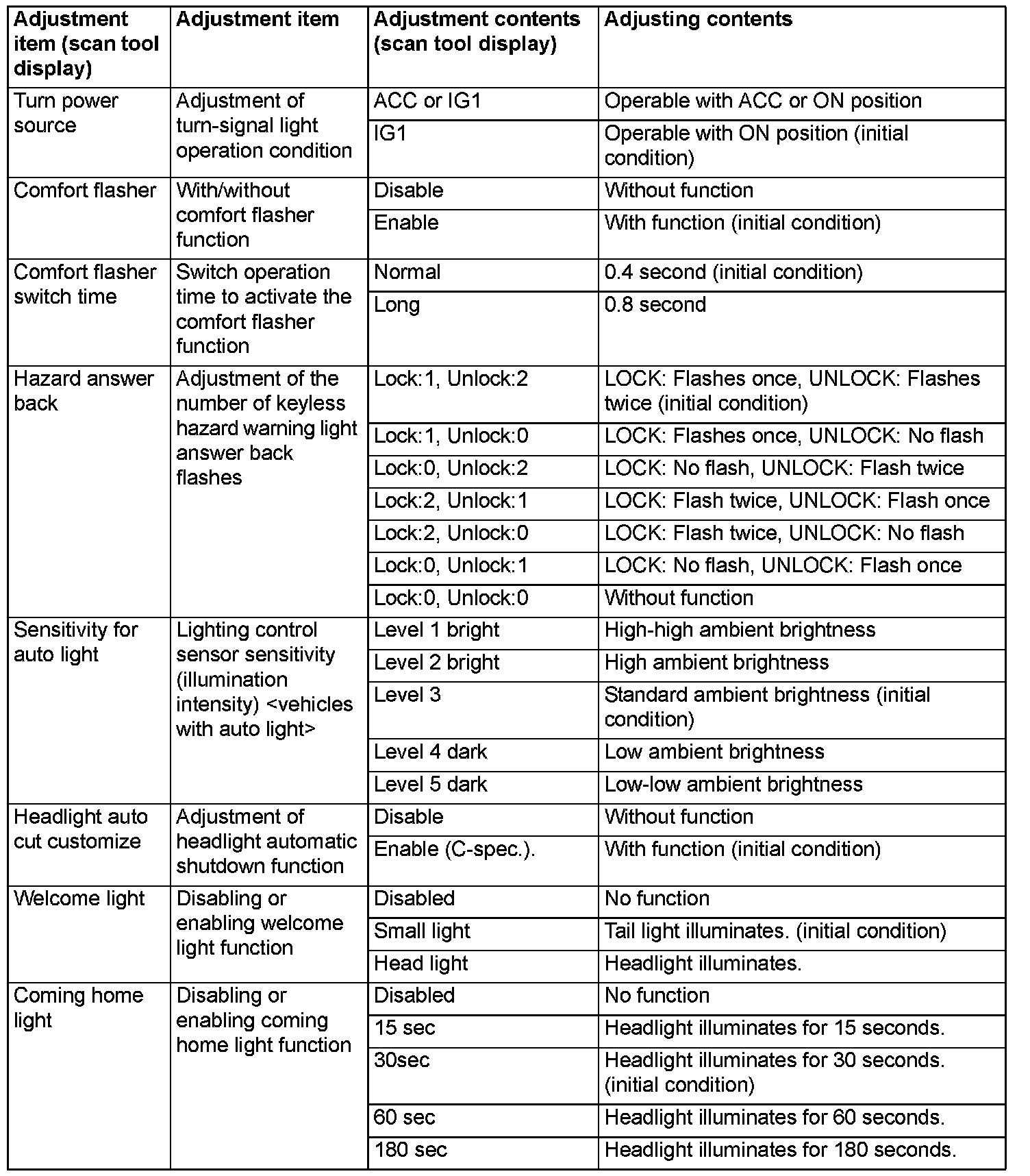 With the scan tool MB991958 operation, the following functions can be programmed. The programmed information is held even when the battery is disconnected.