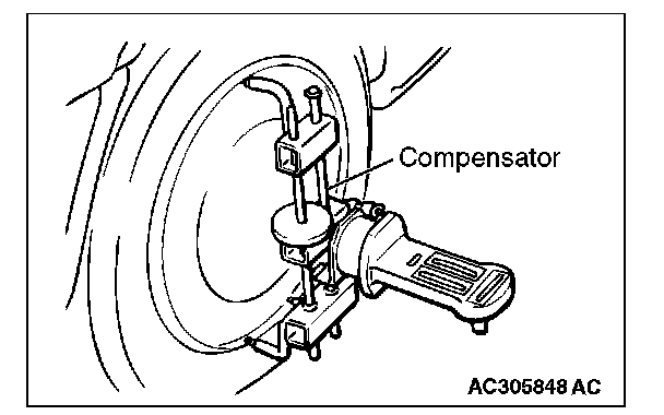 ^ For FWD vehicles with aluminum wheels, attach the camber/caster/kingpin gauge by using a compensator.