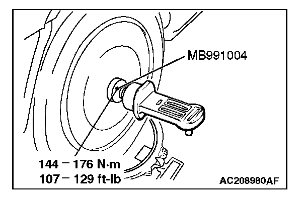 ^ For AWD vehicles with aluminum wheels, tighten the wheel alignment gauge attachment (Special tool: MB991004) to the specified torque, then measure the camber.