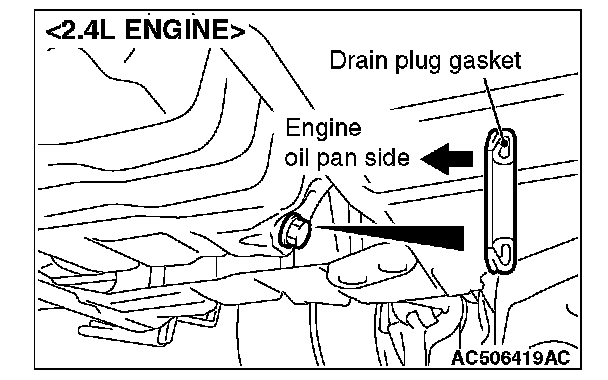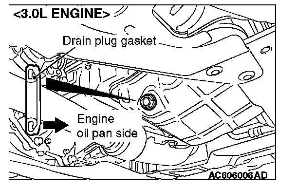 3. Install a new drain plug gasket so that it faces in the direction shown in the illustration, and then tighten the drain plug to the specified torque.
