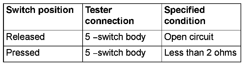 Remove the center panel unit. Then check continuity between the switch terminal and switch body.