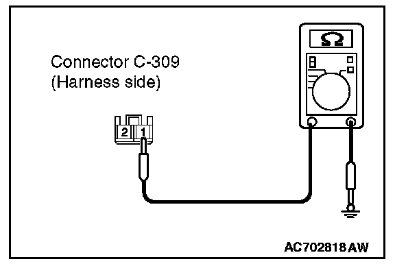 STEP 13. Check the wiring harness between front door lock actuator (RH) connector E-09 (terminal 1) and ETACS-ECU connector C-301 (terminal 10).