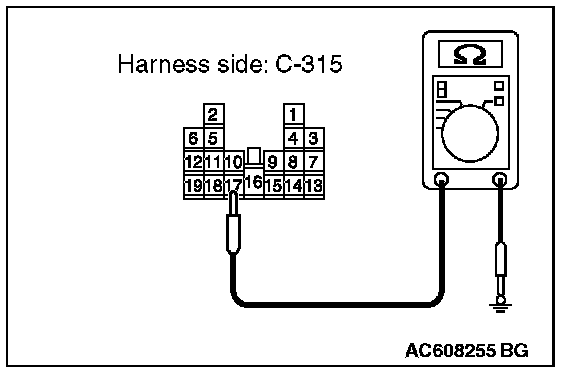 STEP 3. Check the wiring harness between ETACS-ECU connector C-315 (terminal 17) or C-317 (terminal 15) and the ground.