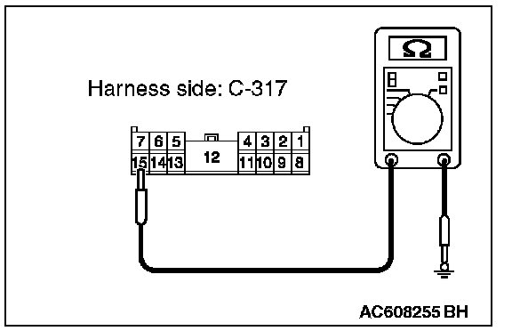 3. Measure the resistance value between ETACS-ECU connector C-317 terminal 15 and ground.