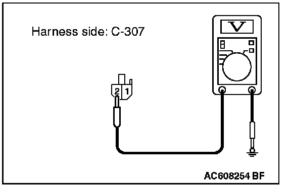 2. Measure the voltage between ETACS-ECU connector C-307 terminal 2 and ground.
