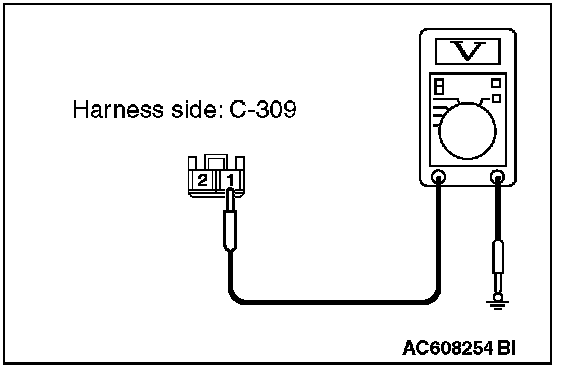 3. Measure the voltage between ETACS-ECU connector C-309 terminal 1 and ground.