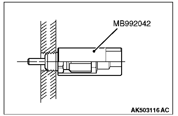 1. Drain engine coolant, then remove the engine coolant temperature sensor using the special tool MB992042 (engine coolant temperature sensor wrench).