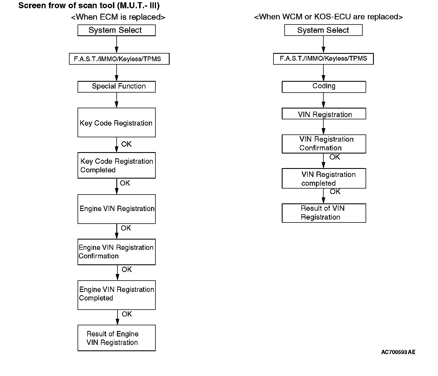 Before the VIN registration to WCM and KOS-ECU, check that the VIN of ECM and vehicle are matched.