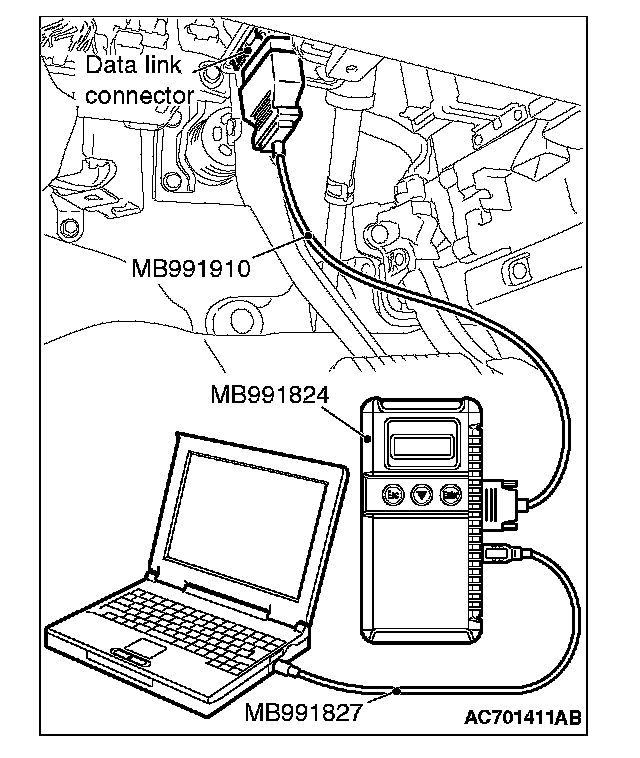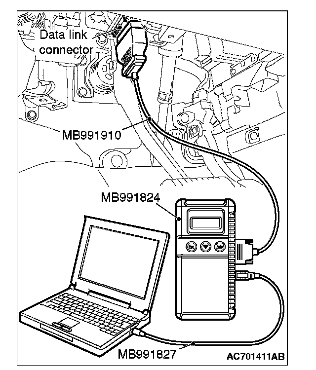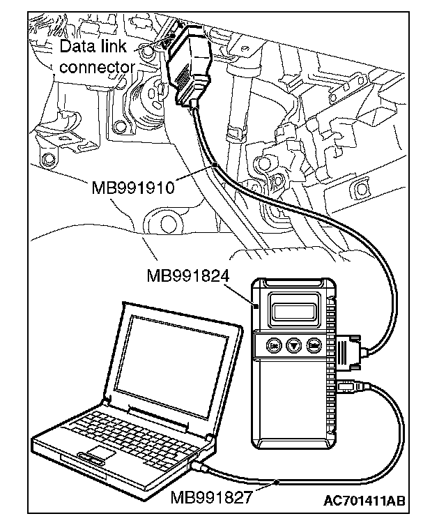 5. Connect special tool MB991910 to the data link connector of the vehicle.