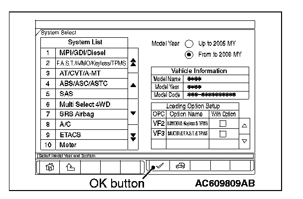 5. Select "ETACS" from "System List", and then press "OK" button.