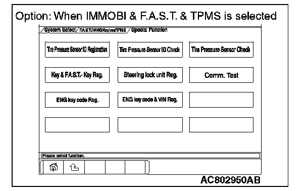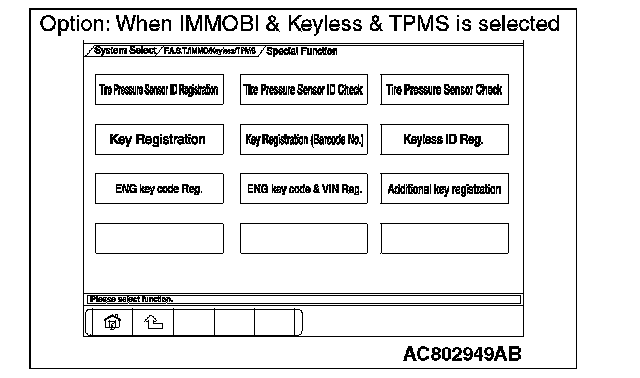 8. Select "F.A.S.T./IMMO/Keyless/TPMS" button from the "System Select" screen. Then, select the applicable option code item and push the OK button.