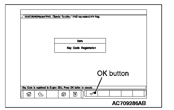 11. Push the OK button after "ENG key code & VIN Reg." is displayed.