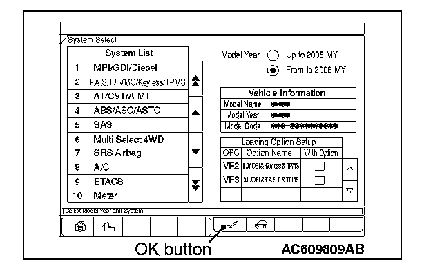 ^ When you select "GasolineENG" system, a selection screen appears asking whether MITSUBISHI. Select a button that the engine belongs to.