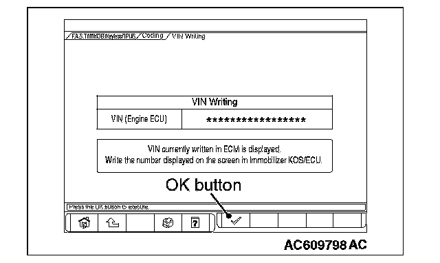 11. Push the OK button after the VIN written in the engine control module is displayed.