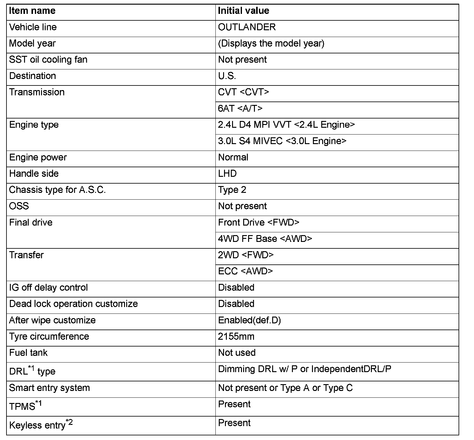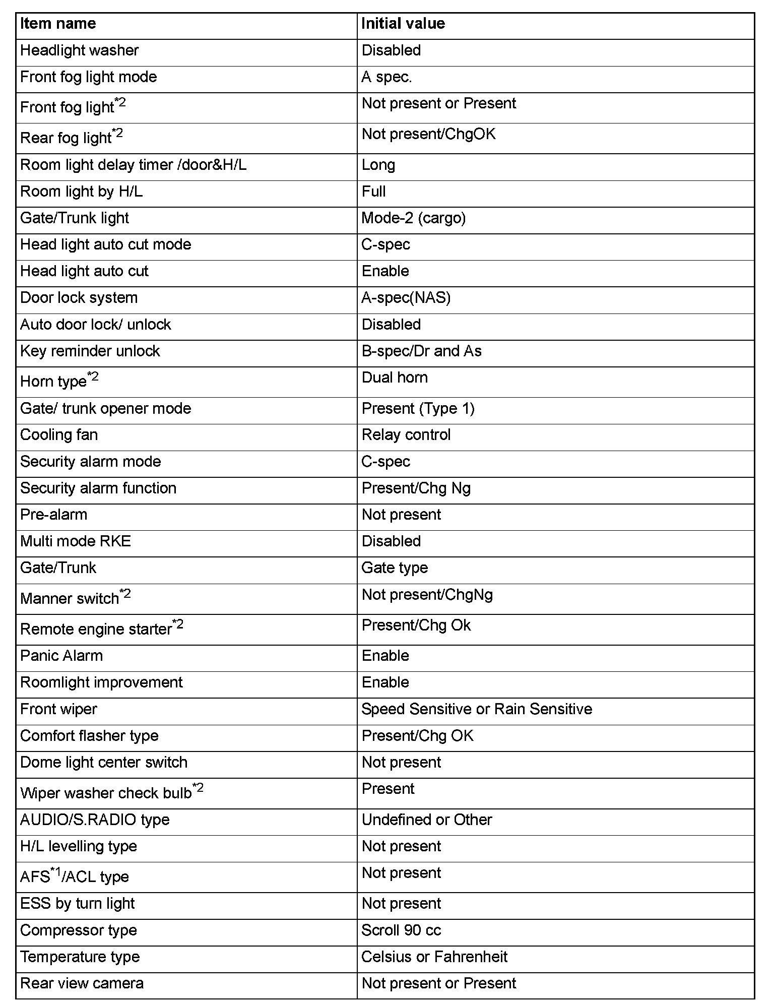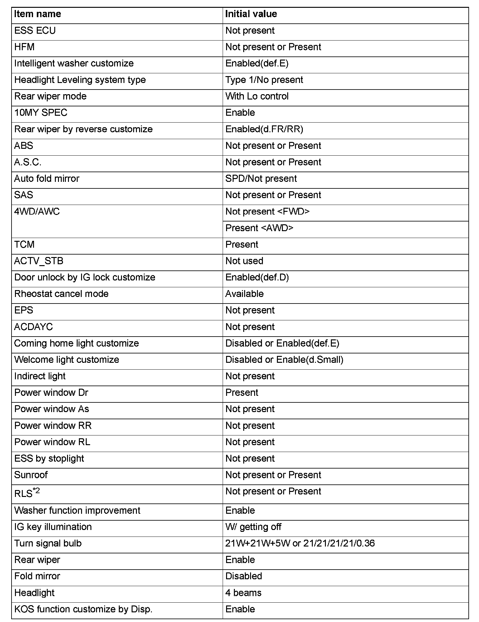 If there is any item indicated by the option coding after equipment change, set ETACS-ECU so that the option coding data corresponds with the equipment content. Functions and systems do not work normally if the setting does not correspond with the equipment.