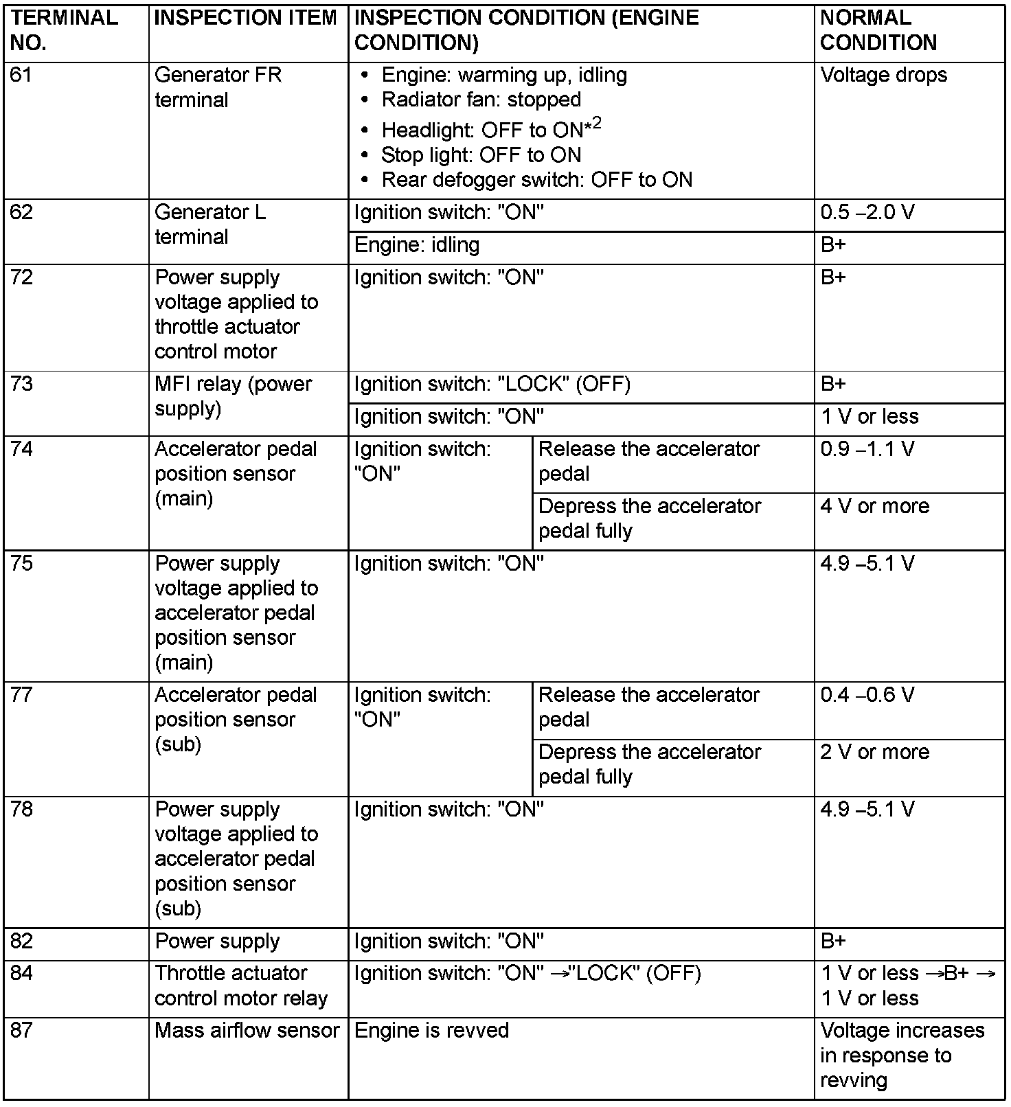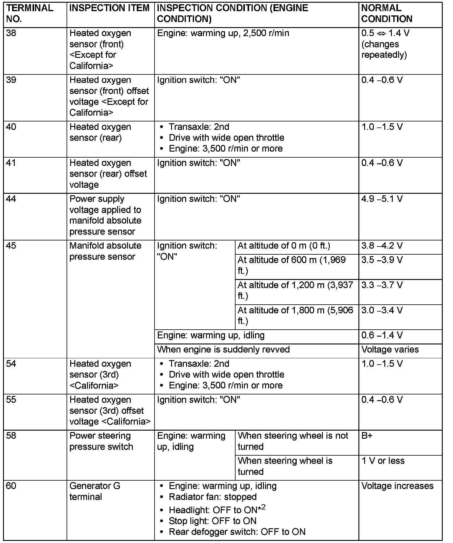 - *2: Vehicles for Canada, the headlight, taillight, etc. remain lit even when the lighting switch is in "OFF" position but is no problem for checks.