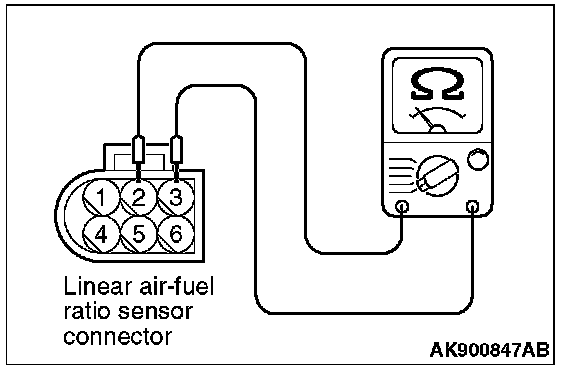 LINEAR AIR-FUEL RATIO SENSOR CHECK [California]1. Disconnect the linear air-fuel ratio sensor connector and connect special tool MB991658 to the connector on the linear air-fuel ratio sensor side.