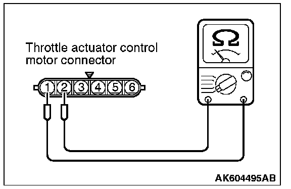 NOTE: If the measured resistance deviates from the standard value, fully open the throttle valve with your finger more then five times, then check the result again. If the throttle valve control serve is not used for an extended period of time, the resistance may be increased as a result of internal forming of oxide film. Therefore, it means that the oxide film can be removed through a self cleaning capability of the throttle valve control servo, if forcibly moved.