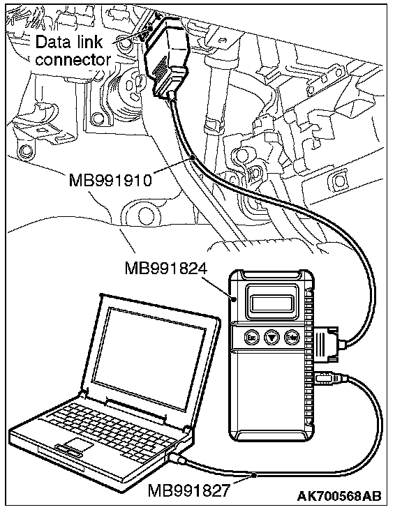 1. Connect scan tool MB991958 to the data link connector.
