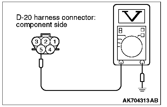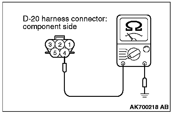 1. Disconnect the connector D-20 and measure at the harness side.