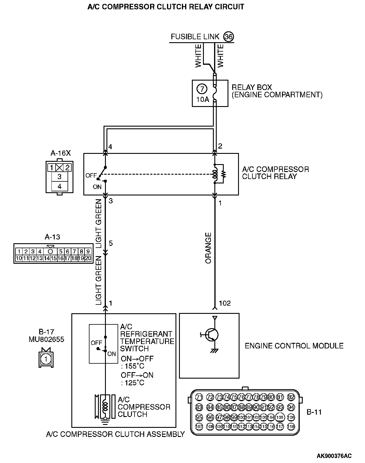 - With this, the A/C compressor clutch relay turns "ON", and the A/C compressor clutch operates.