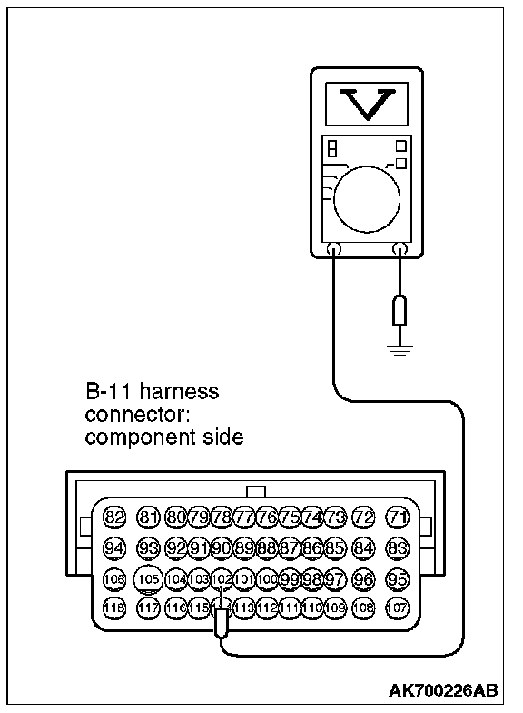 3. Measure the voltage between terminal No. 102 and ground.