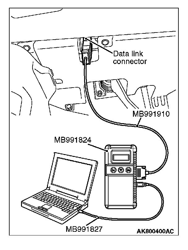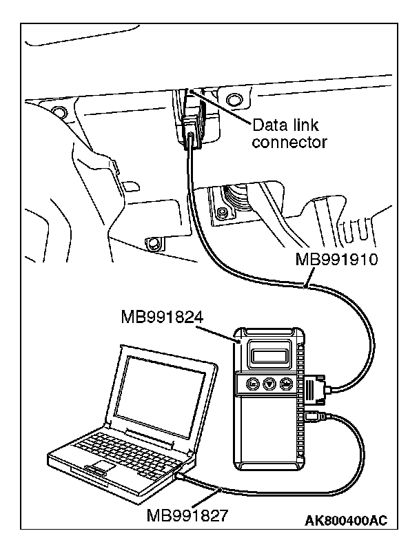 2. Connect scan tool MB991958 to the data link connector.